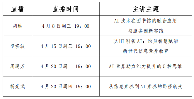 (二)直播讲座(4 月 8 日—4 月 23 日)