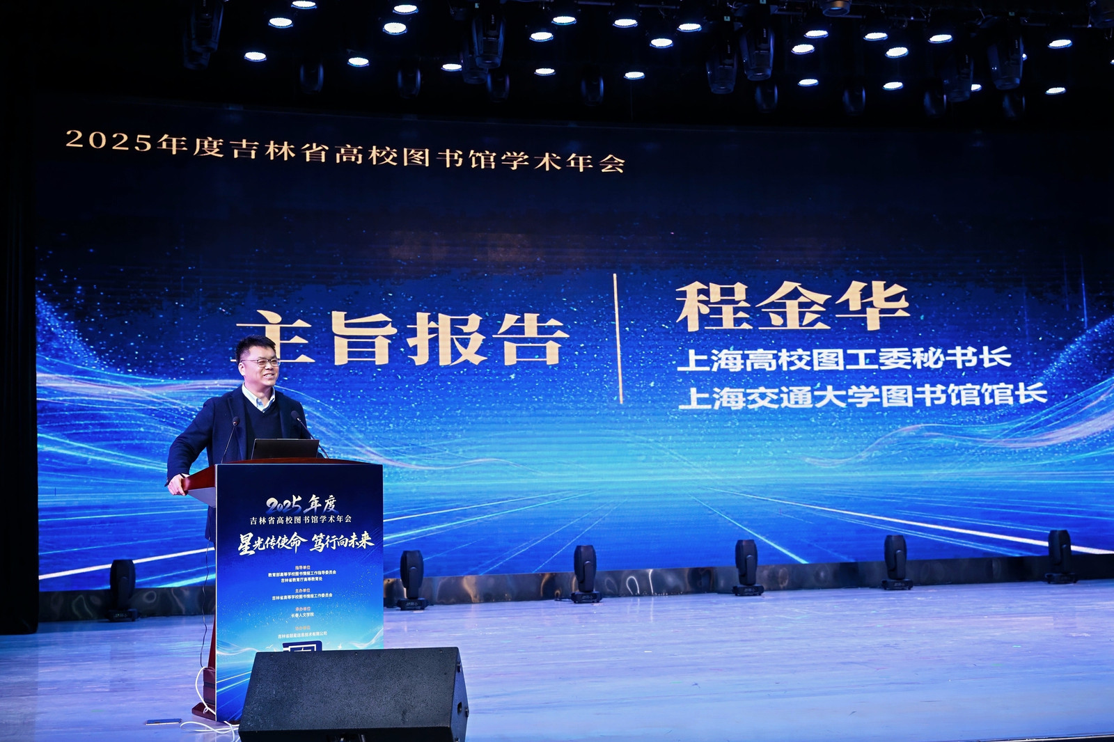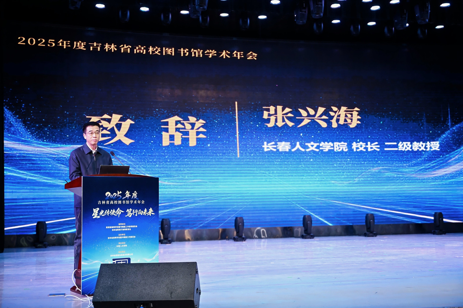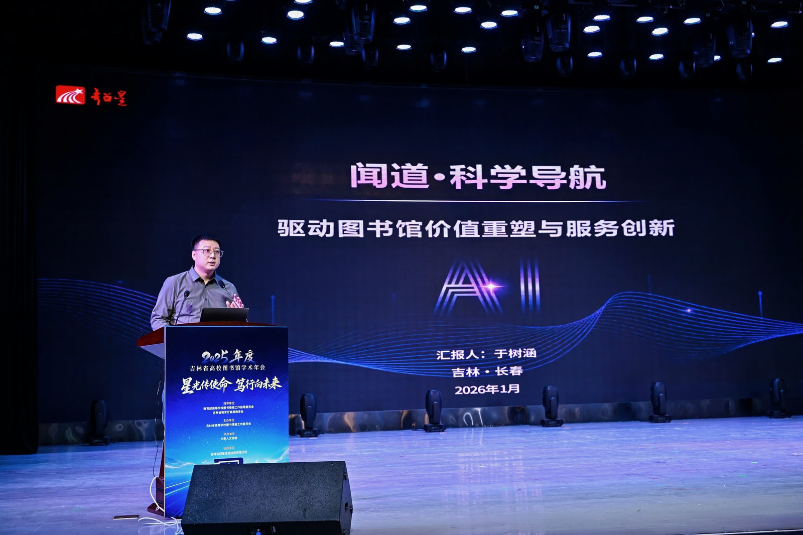 2026年1月5日,由吉林省高等学校图书情报工作委员会主办、长春人文学院承办、吉林省超星信息技术有限公司协办的“2025年度吉林省高校图书馆学术年会”在长春人文学院隆重举行。本次年会以“星光传使命,笃行向未来”为主题,来自全省60余所高校的图书馆馆长、业务骨干及特邀嘉宾等300余人参会,聚焦“十五五”时期高校图书馆的责任与使命,围绕AI赋能、智慧服务、资源共建共享等热点议题展开深入交流。
