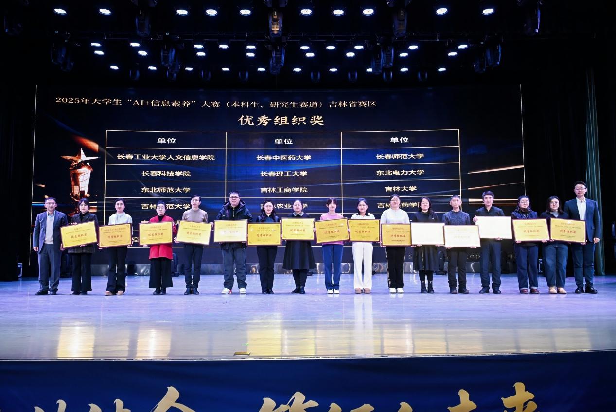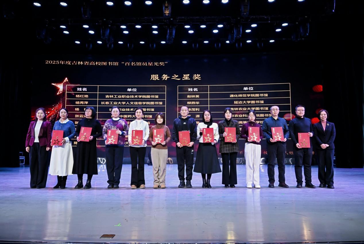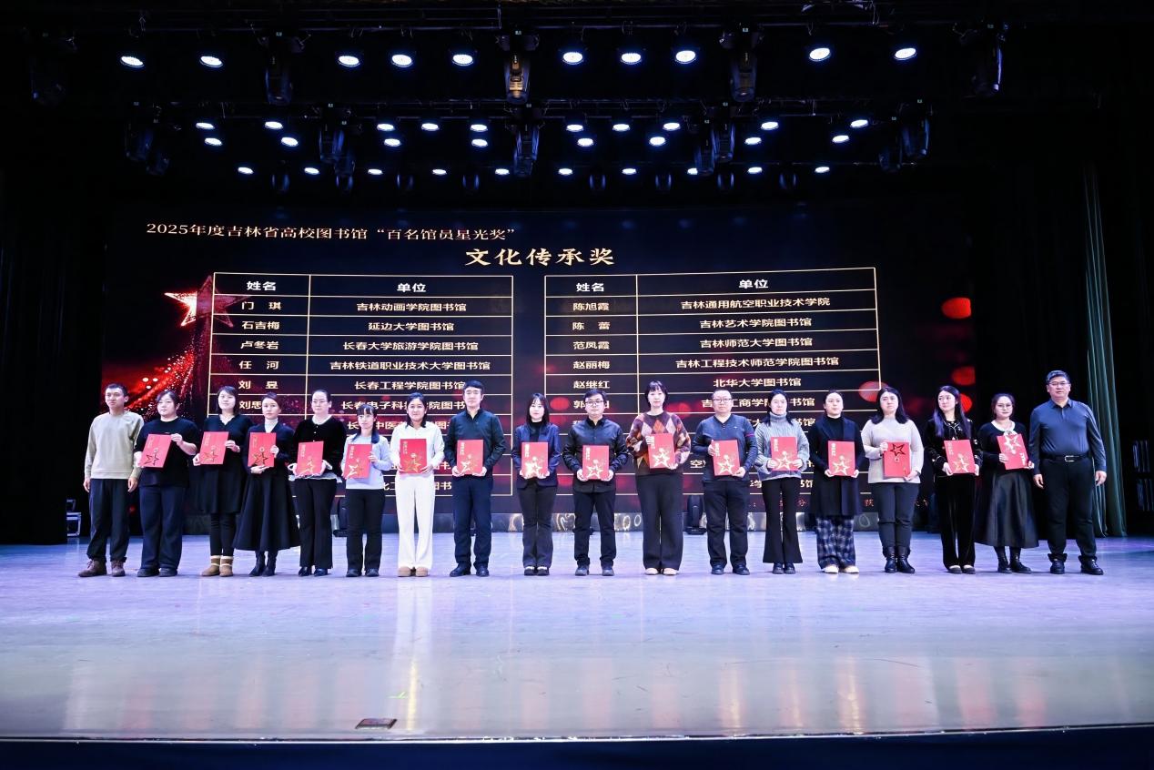 年会最后表彰了2025年吉林省“AI+信息素养大赛”优秀组织单位及“百名馆员星光奖”获得者,彰显全省图书馆人积极进取、开拓创新的风貌。